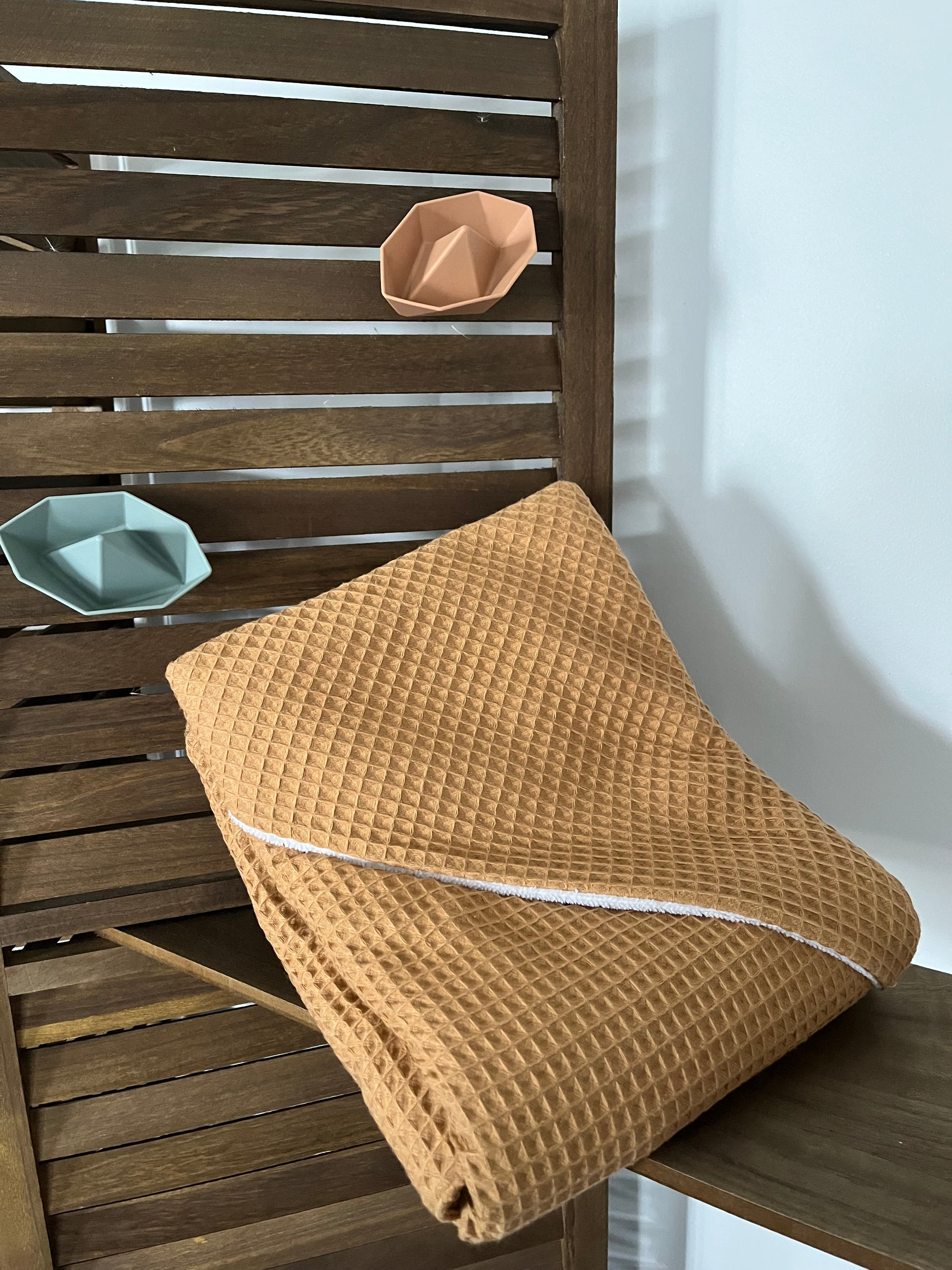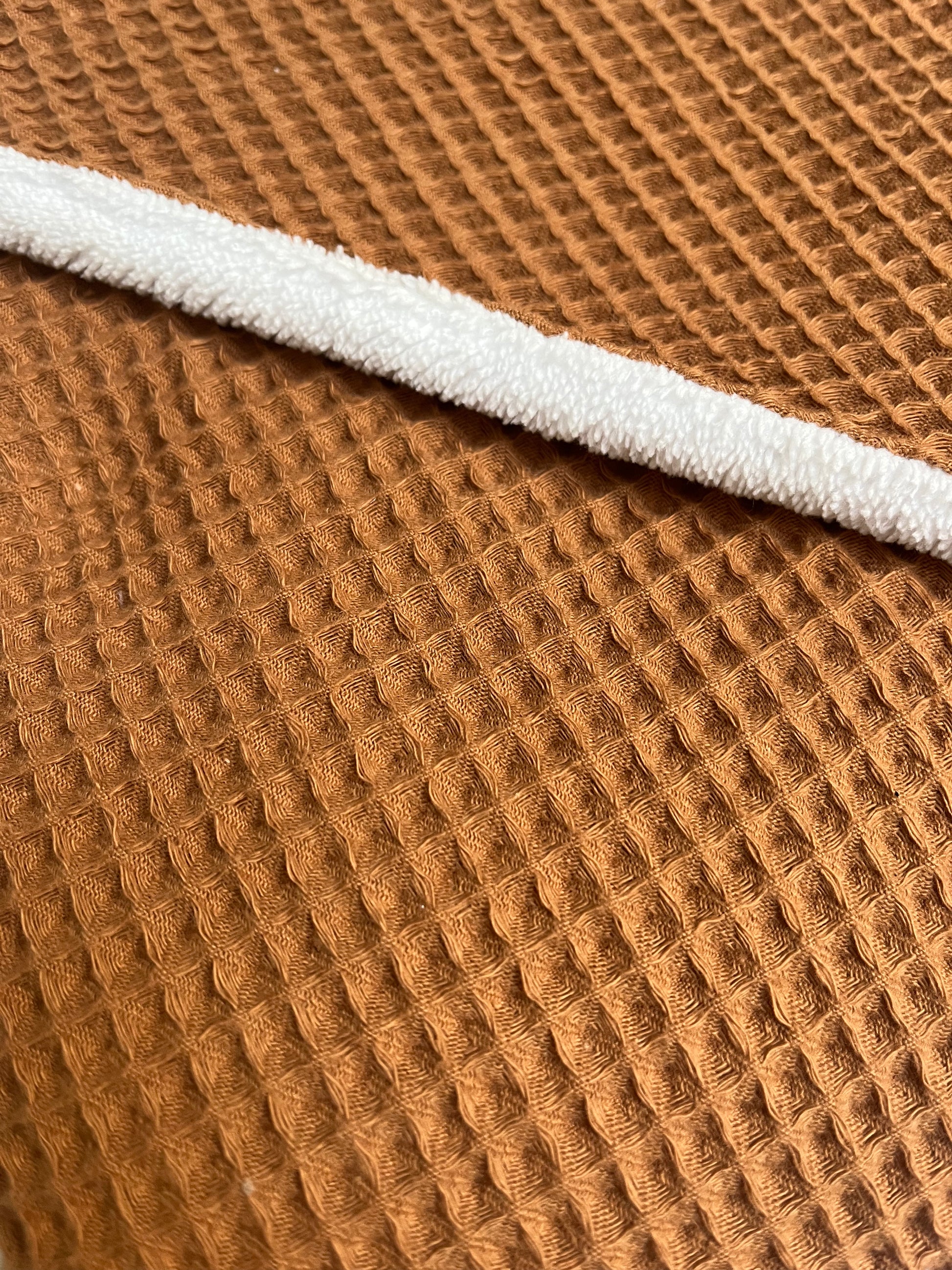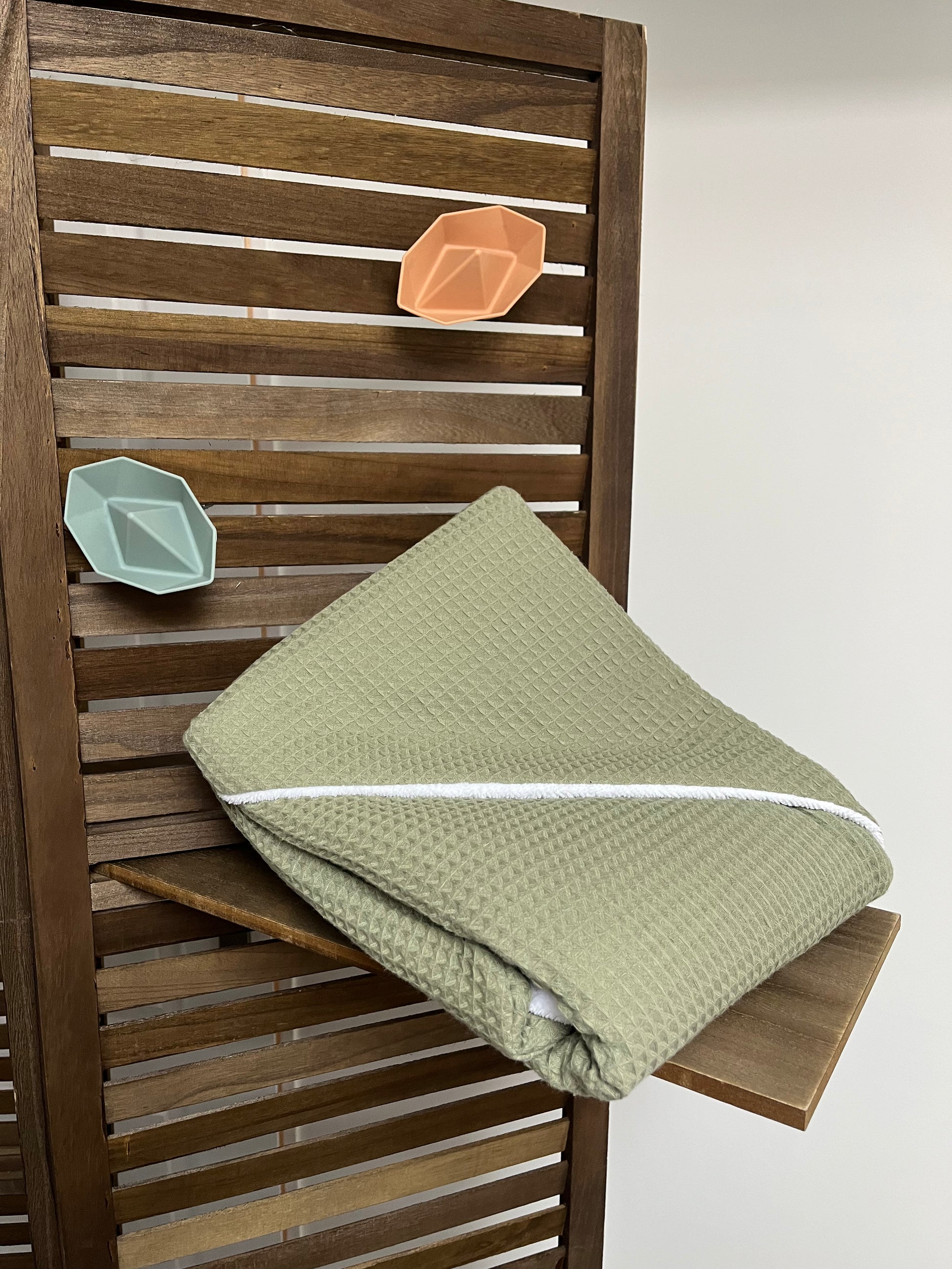 Fabriquée à la main sur l'ile d'Oléron, avec un tissu éponge en fibre de bambou ultra douce et absorbante et entièrement doublée d'un tissu coton en nid d'abeille tout deux certifiés oeko tex.