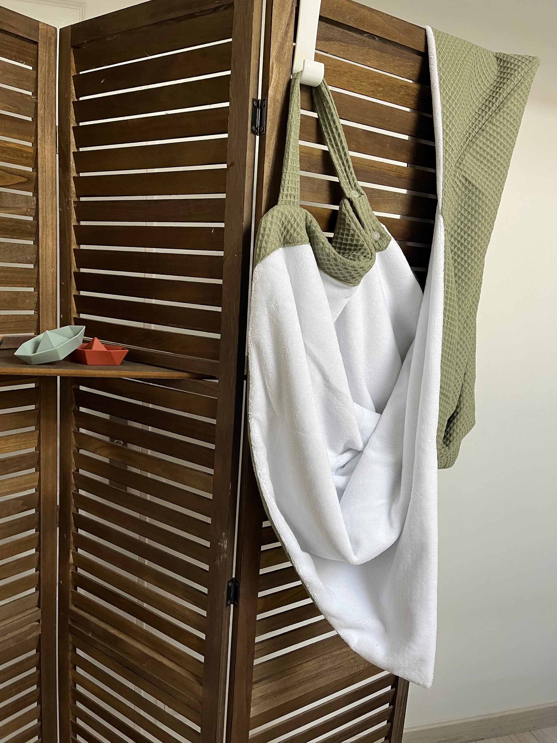 La cape de bain tablier pour bébé. Votre nouvelle alliée pour un moment de douceur et de partage cooconing.