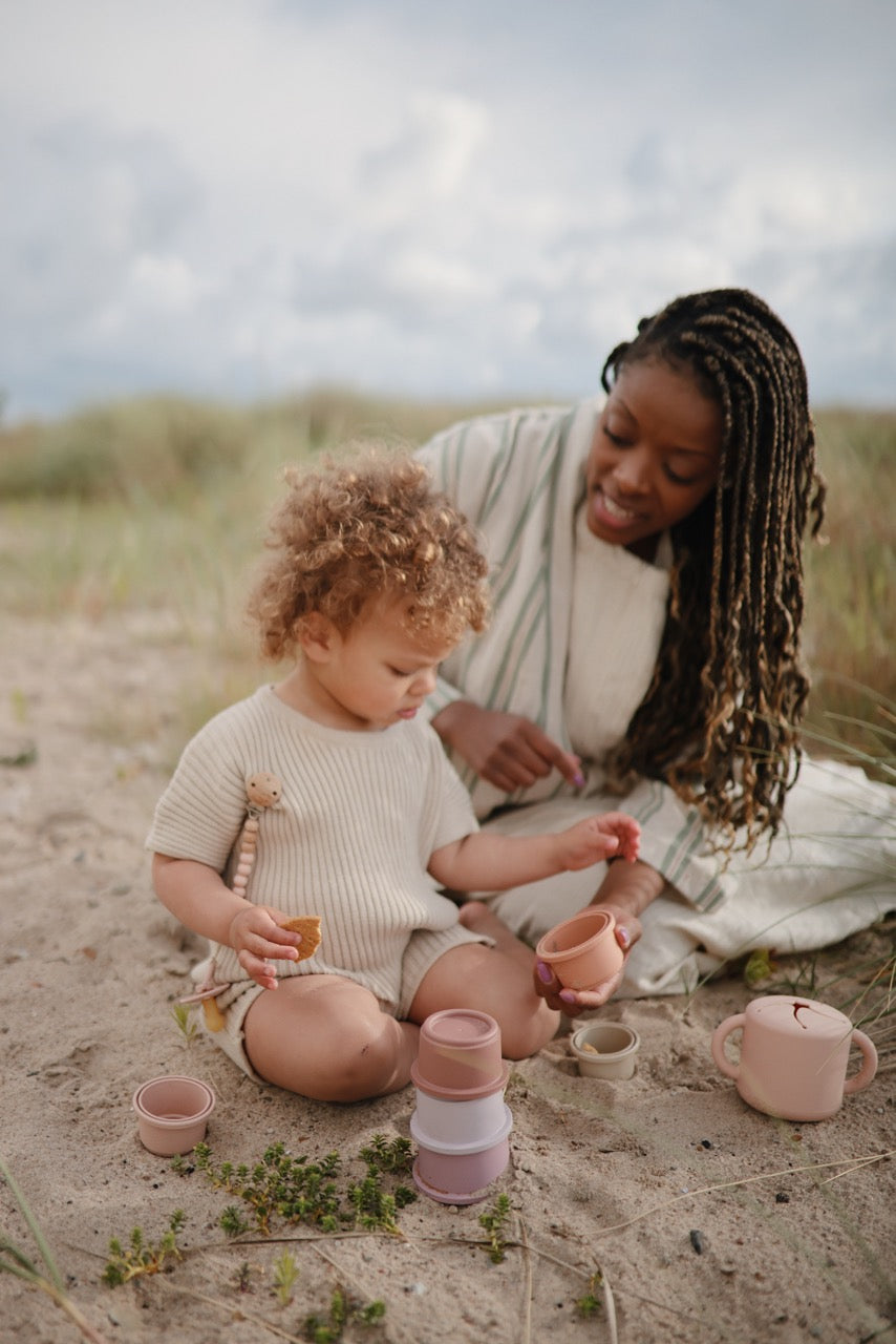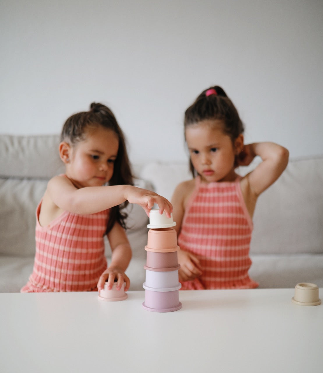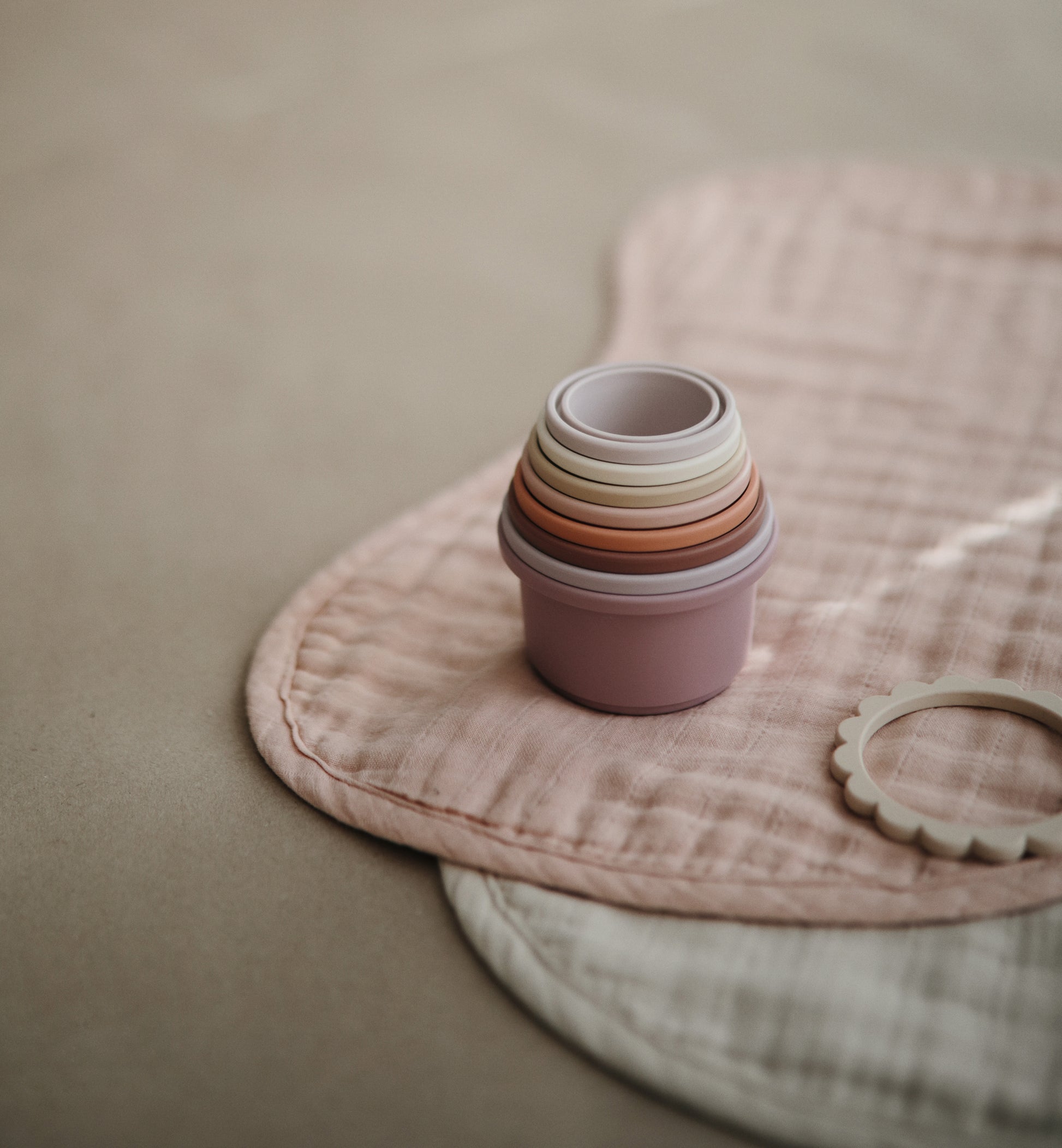 Ce jeu d'empilement va aider bébé à developper son sens de l'organisation ainsi que sa motricité.